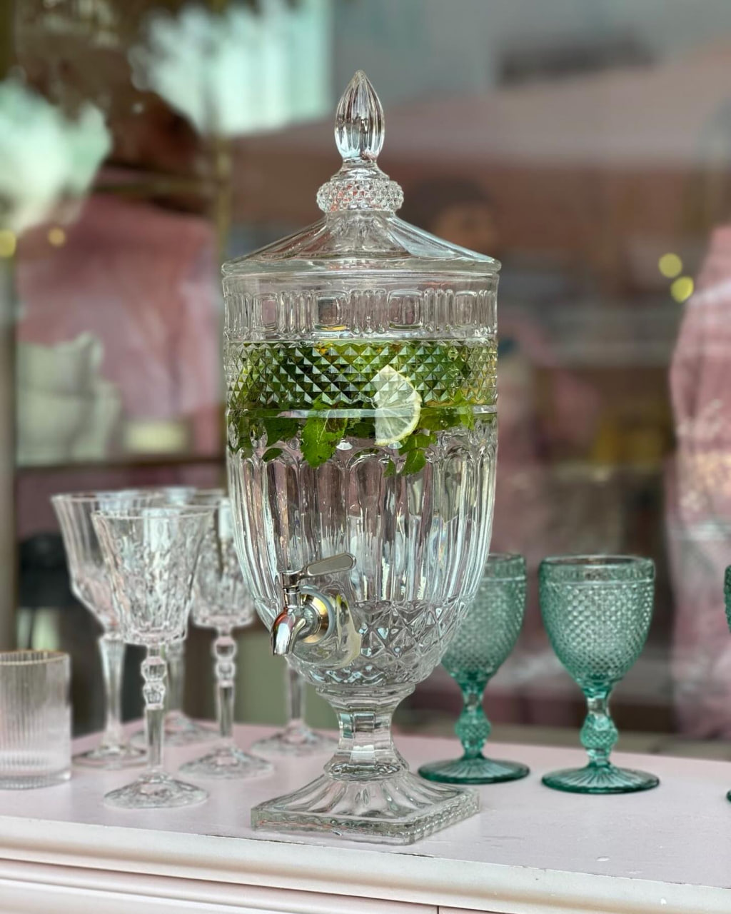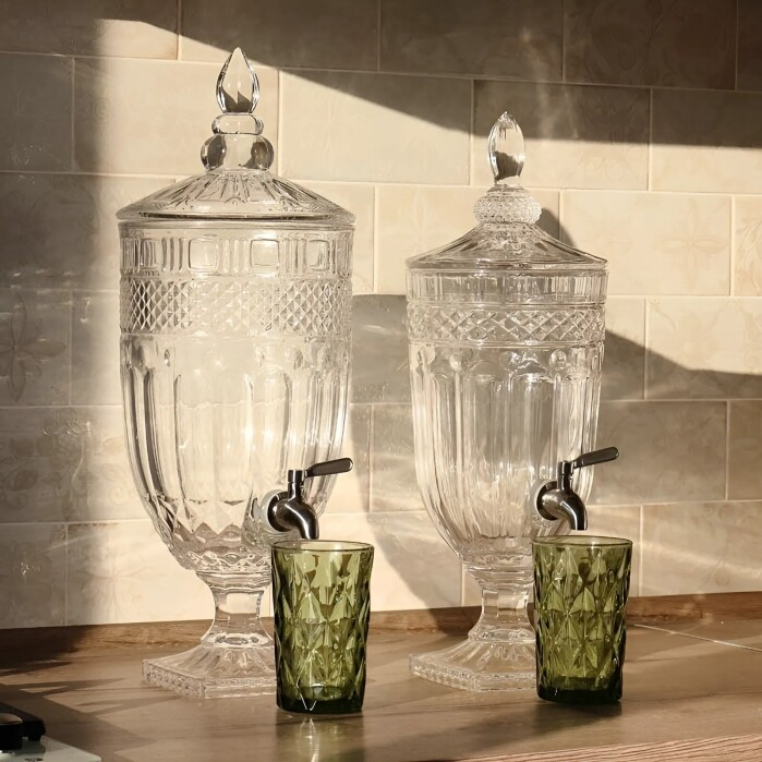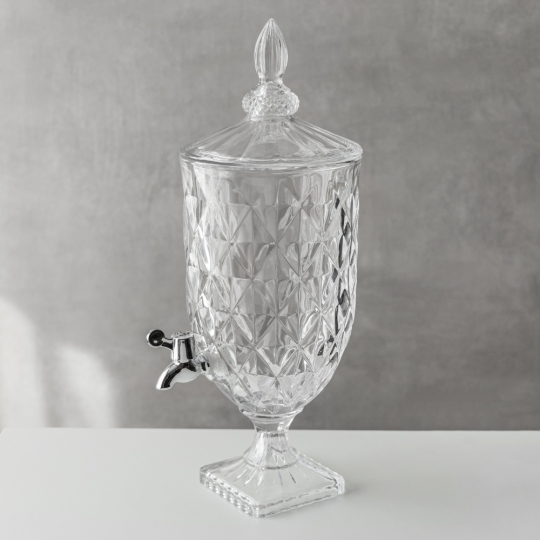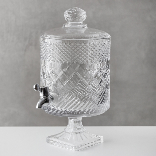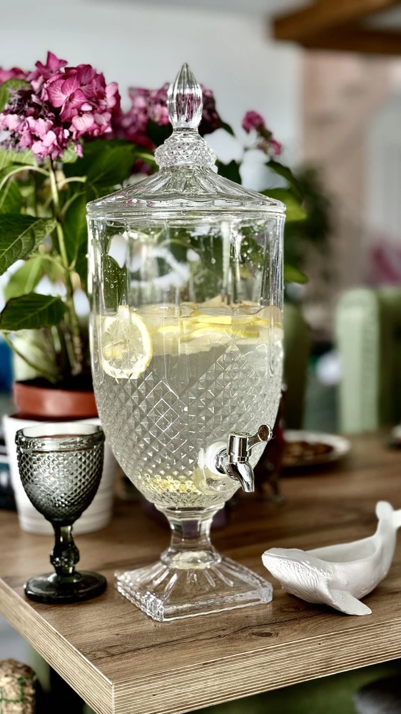 Лимонадниця – ідеальне рішення для стильної подачі улюблених напоїв! Цей диспенсер не лише збереже свіжість лимонаду, компоту чи коктейлю, а й стане вишуканим акцентом вашого інтер'єру, додаючи атмосфері легкості та свята.
