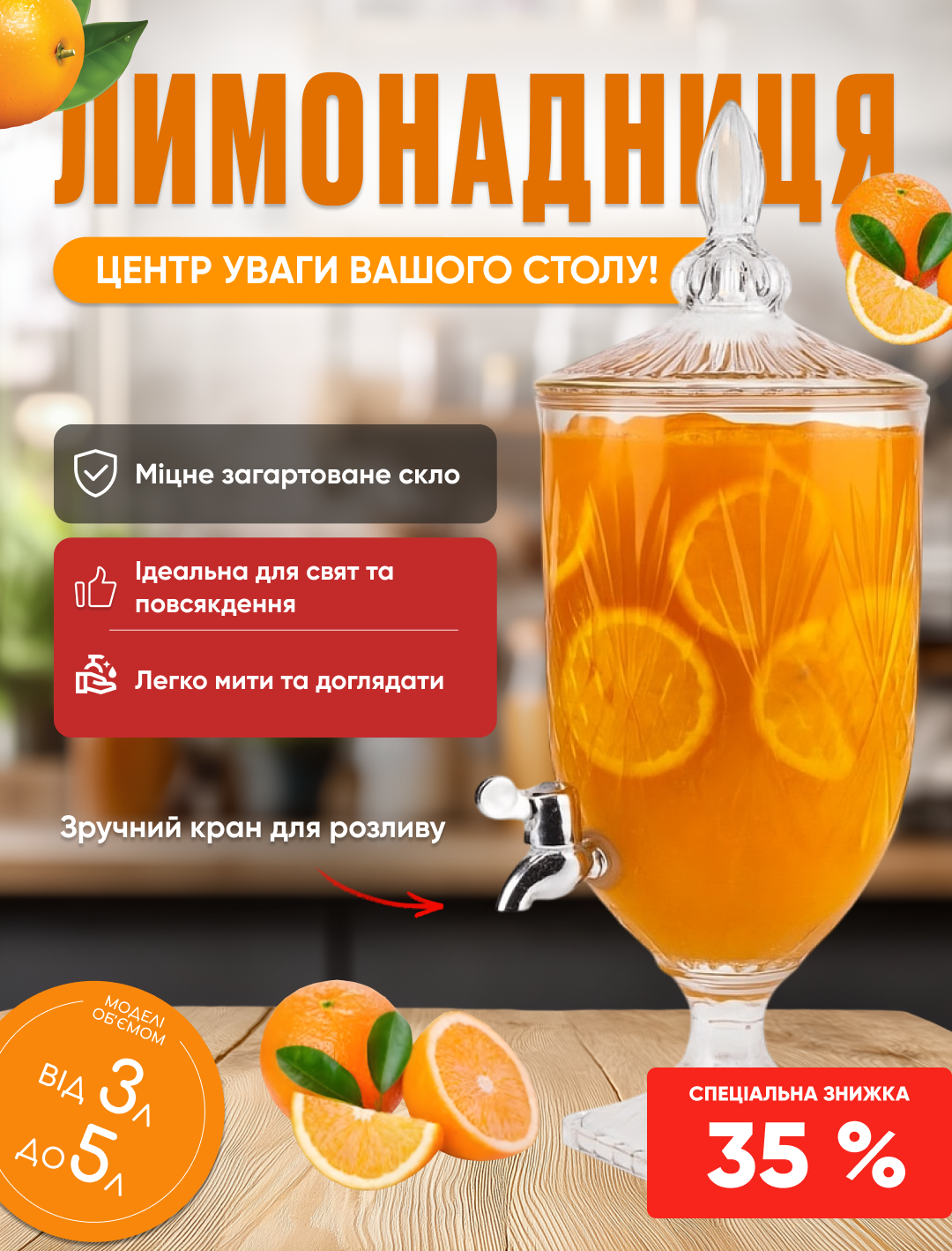 Ця лимонадниця додала шарму моїм вечіркам. Всі гості в захваті від її вигляду та зручності. Тепер це мій must-have для будь-яких заходів.